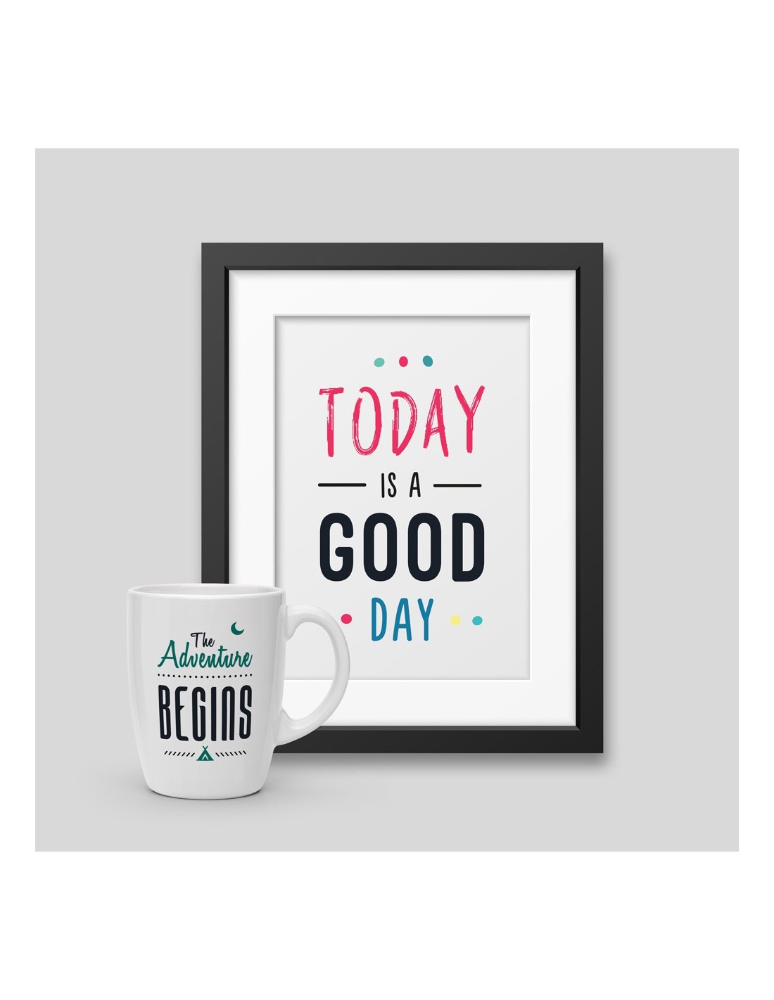 Mug The Adventure Begins + Affiche encadrée Today is a good day 40x60cm